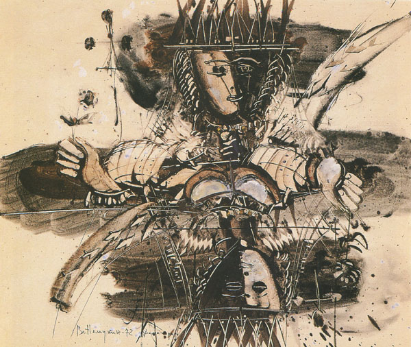 Между мимезисом — подражанием яви и произволом формотворчества прокладывался безотказный канал сообщения — логика цикла, серии, где в едином образном действе перемешаны атрибуты игры (фигуративные знаки) и беспредметные наплывы авторской живописи.