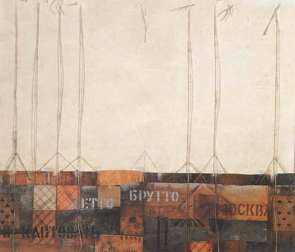 Впрочем, дело было не только в поп-арте. Игра и “ворожба” с предметом — вещью, с его житейски-бытовой знаковостью, фактурной плотью и закадровой «метафизикой» — это все было, видимо, в крови московской школы, где еще в начале века натюрморт или коллажные фактуры часто служили стартовыми площадками для езды в Неведомое — излюбленным материалом вольного эксперимента.
