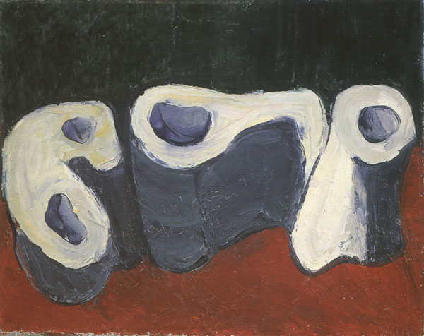 Так или иначе «не в дверь, так в окно» предметность и фигуративное начало заявляли о своих нетрадиционных возможностях. У всех это произошло по-разному: у Зверева и Яковлева экспрессивно-сдвинутая изобразительность портрета; у Рабина — обостренная черным контуром знаковая гротесковость узнаваемых обыденных реалий, начиняемых черной иронией злободневных социальных подтекстов (все эти подворотни и тупики, керосинки и бараки, паспорта и сов-газеты и т. п.).